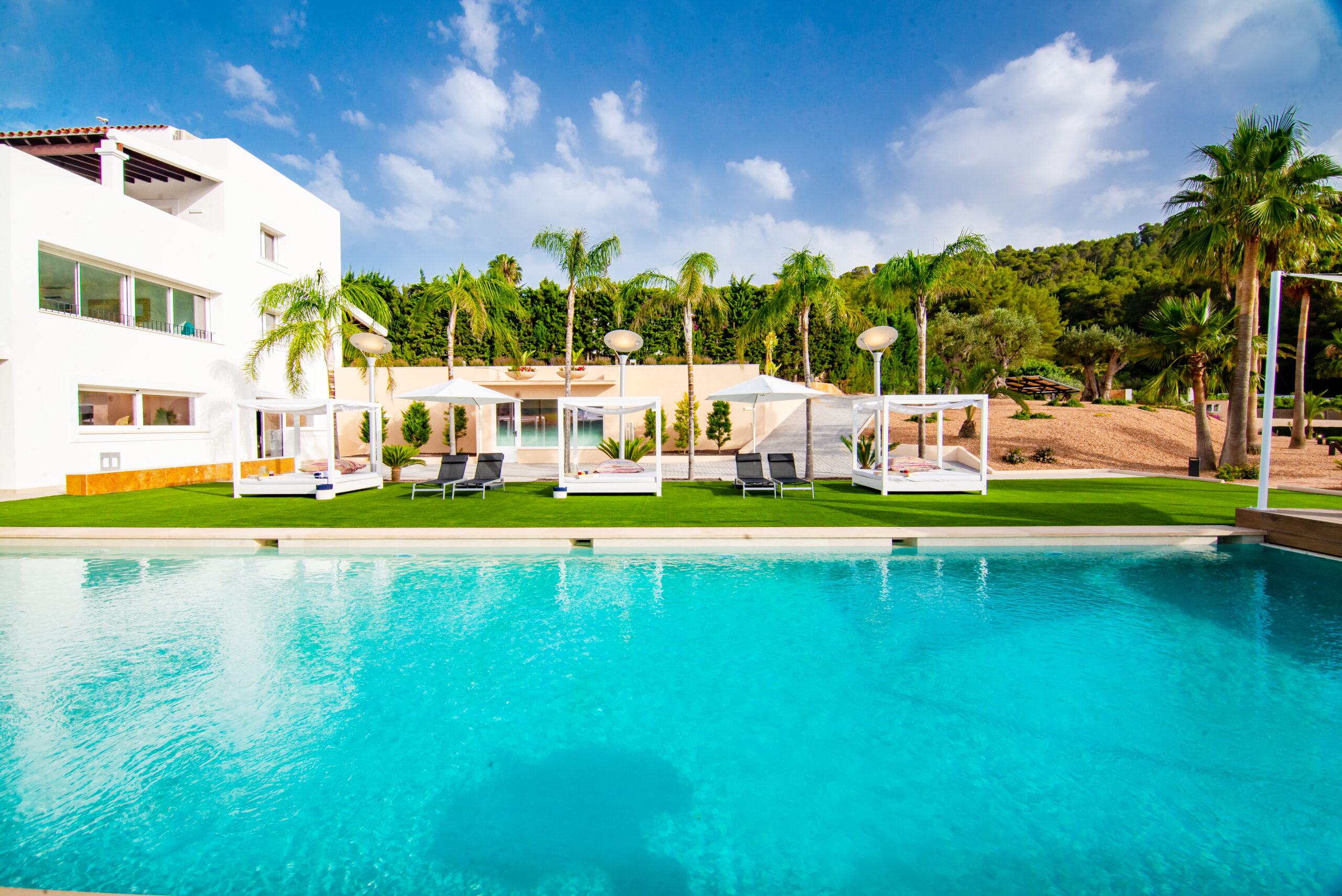 Situated just five minutes from Ibiza Town, Marina Botafoch, Pacha, Lío, Cipriani and the island’s most popular beaches such as Talamanca and Cala Olivera, this villa combines exclusivity, security (24-hour gated community) and proximity to Ibiza’s vibrant lifestyle.